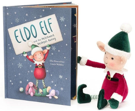 Eldo Elf and the Patchwork Bashful Bunny and Eldo Elf are a joyful duo. A festive story about an elf turning disaster into delight; and a soft elf in a berry coat and ivy green bobble hat with matching boots.
