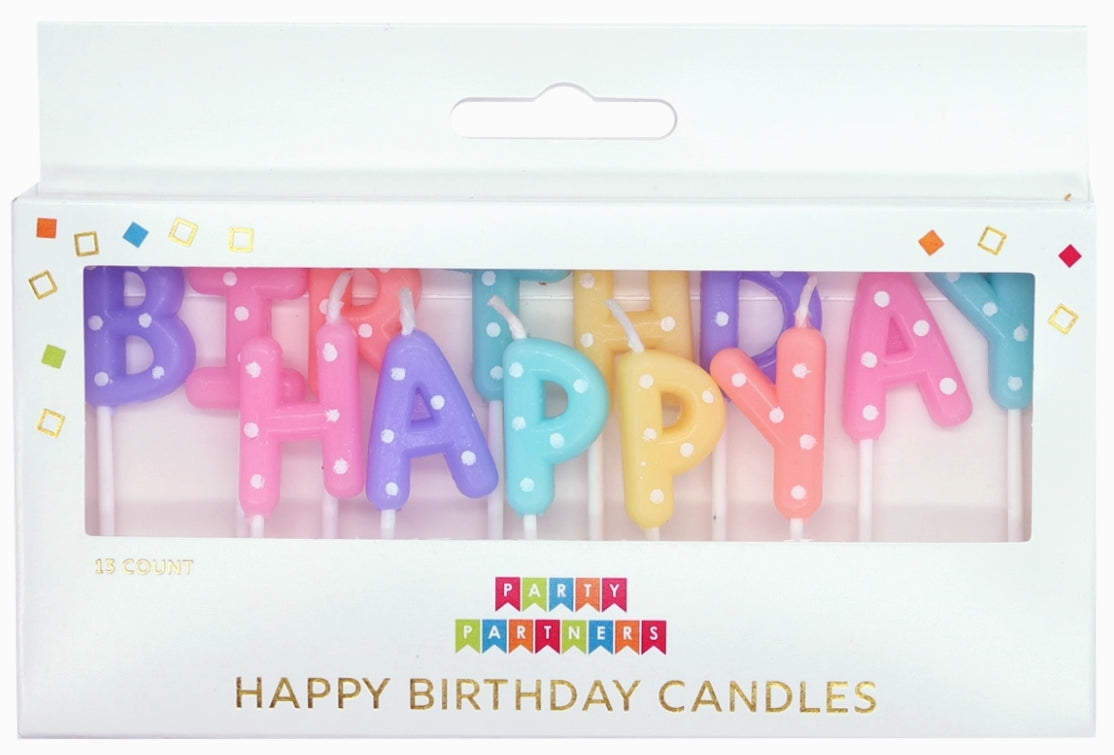 Happy Birthday Pastel Dotted Letter Candle Set
