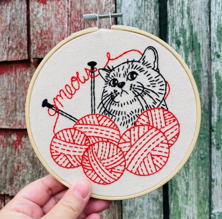 Kitten with Knitting Complete Embroidery Kit