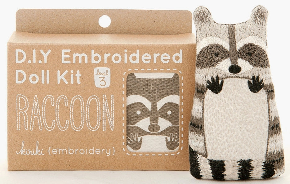 Raccoon is a Level 3 pattern, using a variety of stitches that cover up most of the pattern surface. Great for adventurous beginners or seasoned stitchers! All Kiriki patterns are screen printed by hand with vibrant, water-based inks right onto the fabric so no tracing or transferring is ever required!
