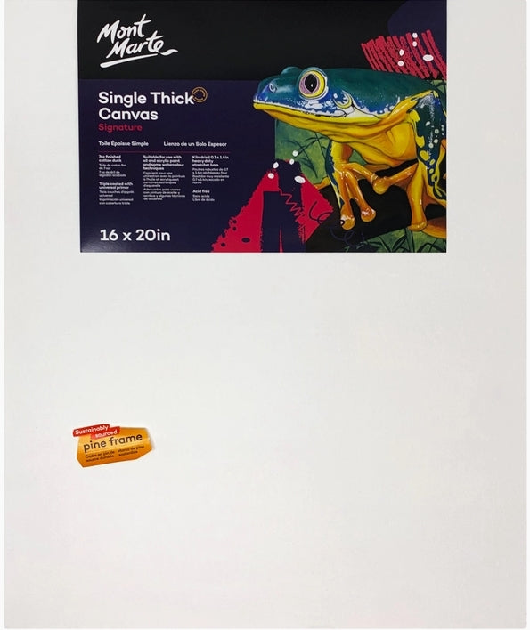Mont Marte Signature Single Thick Canvas is ideal for those beginning in the practice of art. These canvases are back stapled for a clean edge look. The environmentally friendly cotton duck canvas is triple acrylic titanium primed and ready to be painted on.