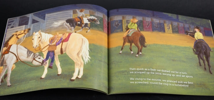 When powerful horses dressed in silvery tack sweep into the arena, four energetic cowkids grab reins, swing onto the mounts and ride like the wind. The cowkids showcase their skills in the pole bending, barrel racing, calf roping and more in this adaption of the classic 'Twas the Night Before Christmas. In the end the cowkids face a choice to stay in the arena or stay with the horses and answer the call to dash away, fly away.